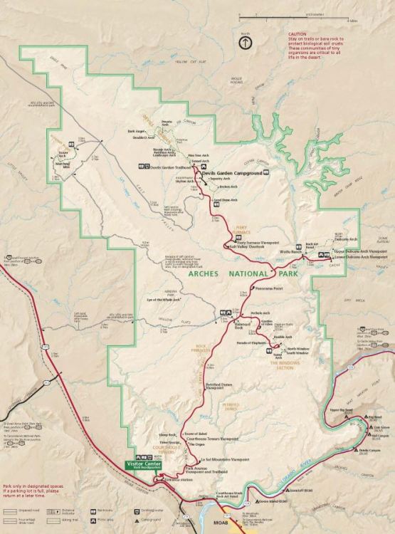 Administered by the National Park Service, it was created as a national monument on April 12, 1929, and was redesignated as a national park on November 12, 1971. The park received more than 1.6 million visitors in 2018. In June, 2019, 2,667 cars visited Arches NP. The photo showing the lines of cars lined up at the entrance was taken in October, 2019 - plan your visit to arrive early.