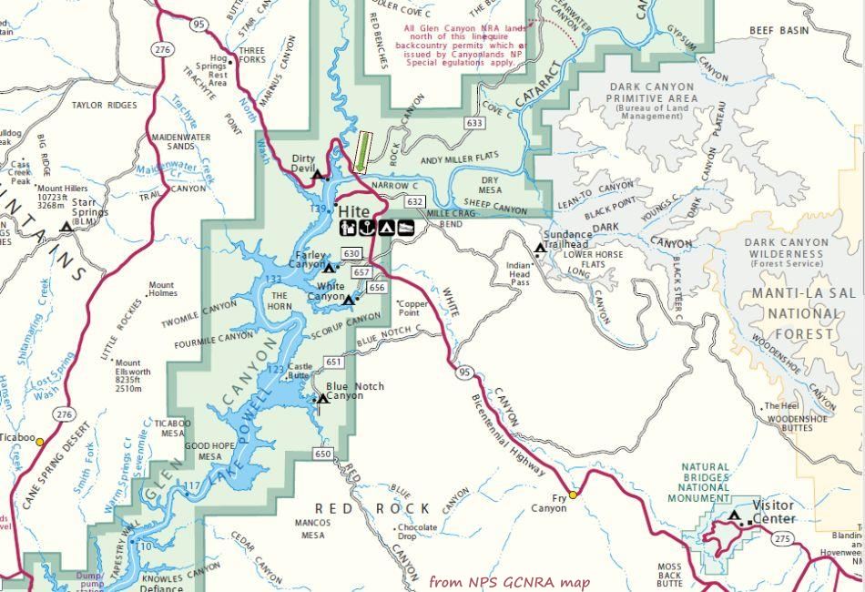 Hite Area Map is a segment of the NPS Glen Canyon National Recreation Area map.