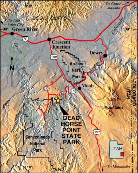 From Discover Moab: 32 miles (51.5 km) from Moab, Dead Horse Point State Park is one of Utah's most spectacular state parks.
