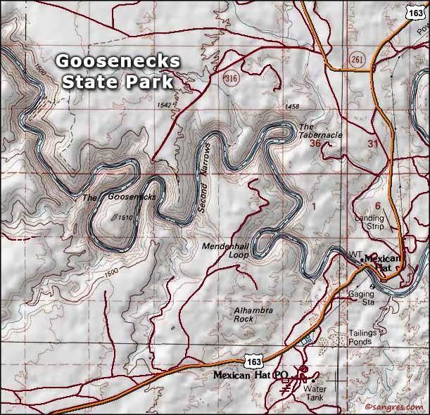 Park Map is a relief map of Goosenecks State Park.