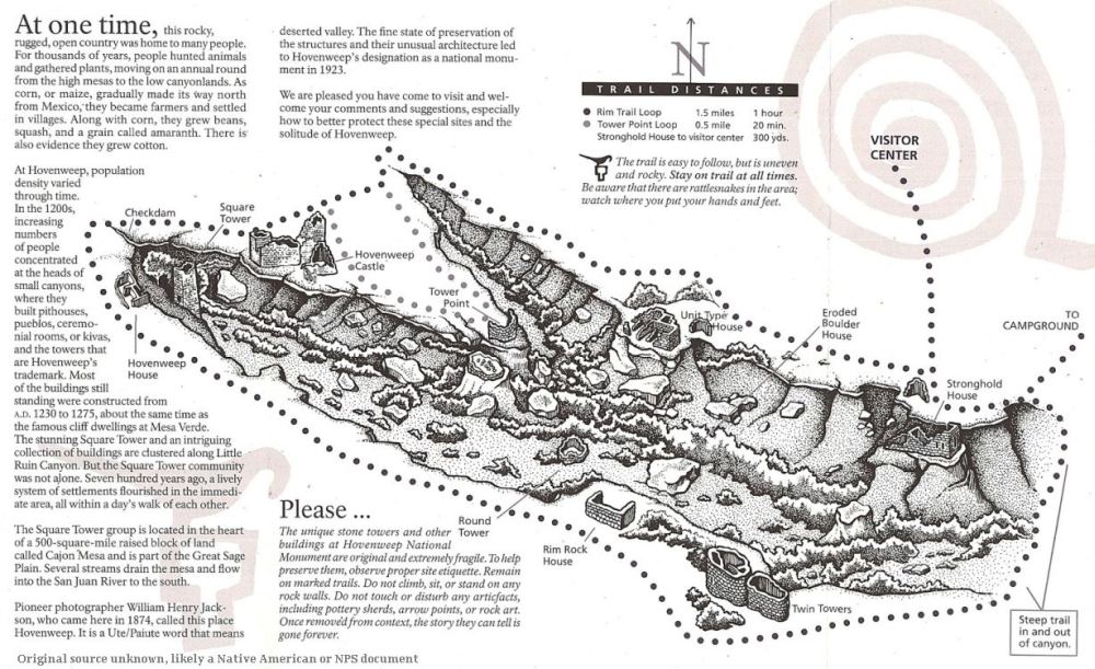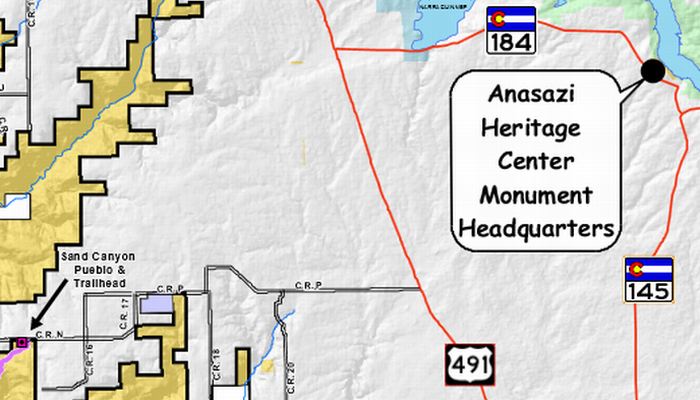 Wide area map is a highway map with Hovenweep in the center of the Trail of the Ancients.