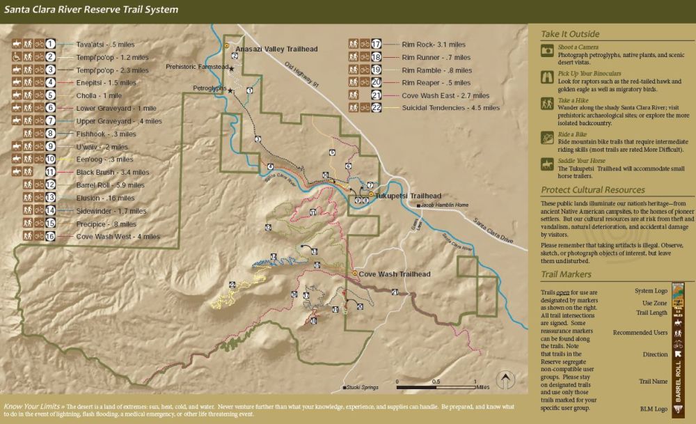 The SCRR map is a map of the Reserve with unmarked trails showing Santa Clara,Utah, and Ivans, Utah, across US91.